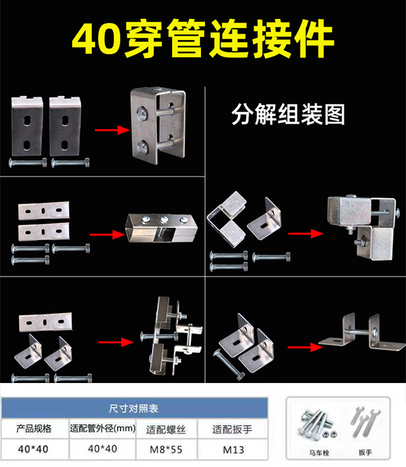方管连接件免焊接固定接头加厚铸铁方钢紧固件车棚框架连接件